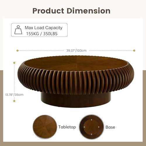 - Simple Assembly & Easy Mobility: Enjoy quick assembly in just 15 minutes with pre-drilled holes and clear instructions. The lightweight yet sturdy design allows for easy repositioning, making this handcrafted round fluted coffee table a convenient and stylish upgrade for your home or workspace.
