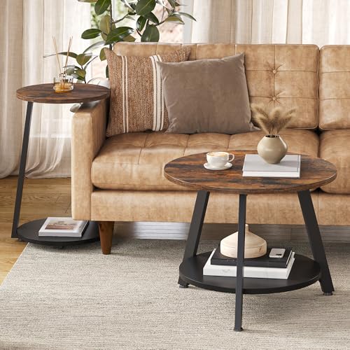 YITAHOME Round Coffee Tables, Set of 2 Nesting Tables with Storage Capacity and Harmonised Style Design, Petite Coffee Tables for Lounge, Side Table for Sofa Bedroom, Rustic Brown
