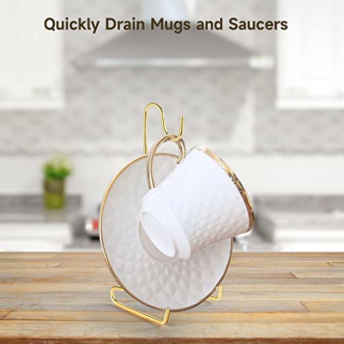 - Appropriate Size: This cup and saucer stand measures 6.2*15.8cm/2.44*6.22inch (W*H), suitable for saucers and plates ranging from 2.44 to 6.22 inches in diameter and all cups and mugs. The stand is straightforward to use without assembly; simply place the saucer and hang the cup on it.