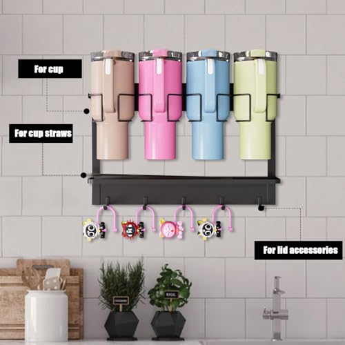 - Space-Saving Storage Rack: This magnetic Stanley cup holder for the fridge efficiently organizes up to 4 30/40 oz Stanley Cups, while the storage shelf and 5 hooks help organise kitchen utensils and other items, freeing up valuable counter and cabinet space.