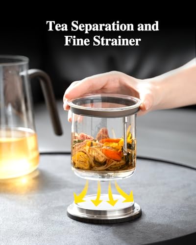 - Revolutionary Magnetic Suction Lid: The inner wooden lid boasts a magnetic mechanism that effortlessly manages tea brewing. Simply twist the lid to align the logo metal plate with the stick valve within the infuser. Once aligned, the valve activates. Observe as your brewed tea drips smoothly into the teapot, relishing a mess-free experience that magically enhances each tea session.