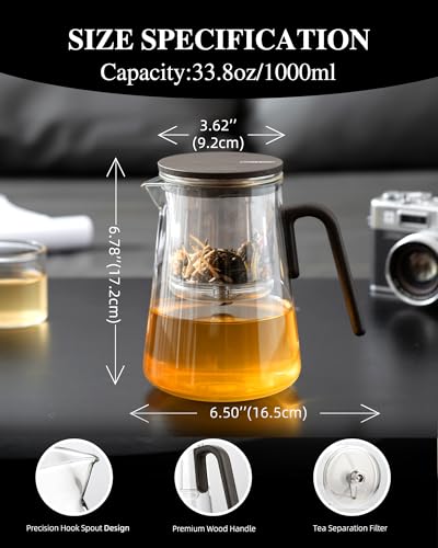 - Superior Craftsmanship: This teapot is constructed from thick, high borosilicate glass that is both transparent and robust, capable of withstanding temperature differences of up to 160°C. Inspired by the precision of an eagle, the spout design ensures clean, splash-free pouring. With a 1000ml capacity, it accommodates 2-4 people, making it perfect for office work or reading sessions.